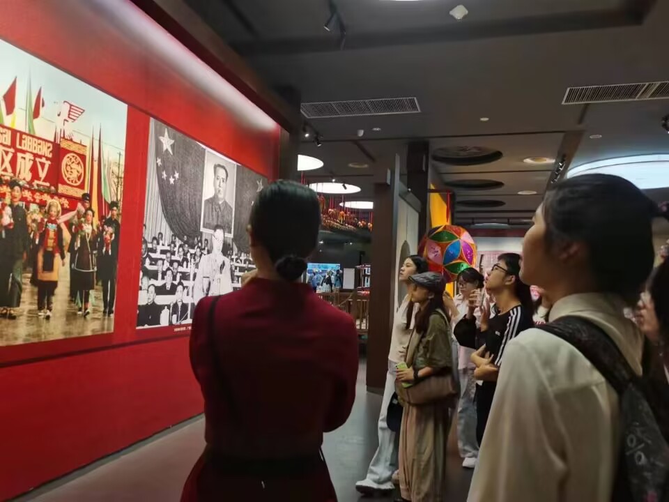 讲解员还介绍了广西世居的十二个少数民族,详细讲解了广西丰富的少数民族文化,让同学们学习和了解到广西作为一个以壮族为主体、多个少数民族聚居的自治区,在习近平新时代中国特色社会主义思想指引下,认真贯彻落实党的民族政策,各族人民和谐相处,融洽生活,谱写了民族团结的时代新篇章。