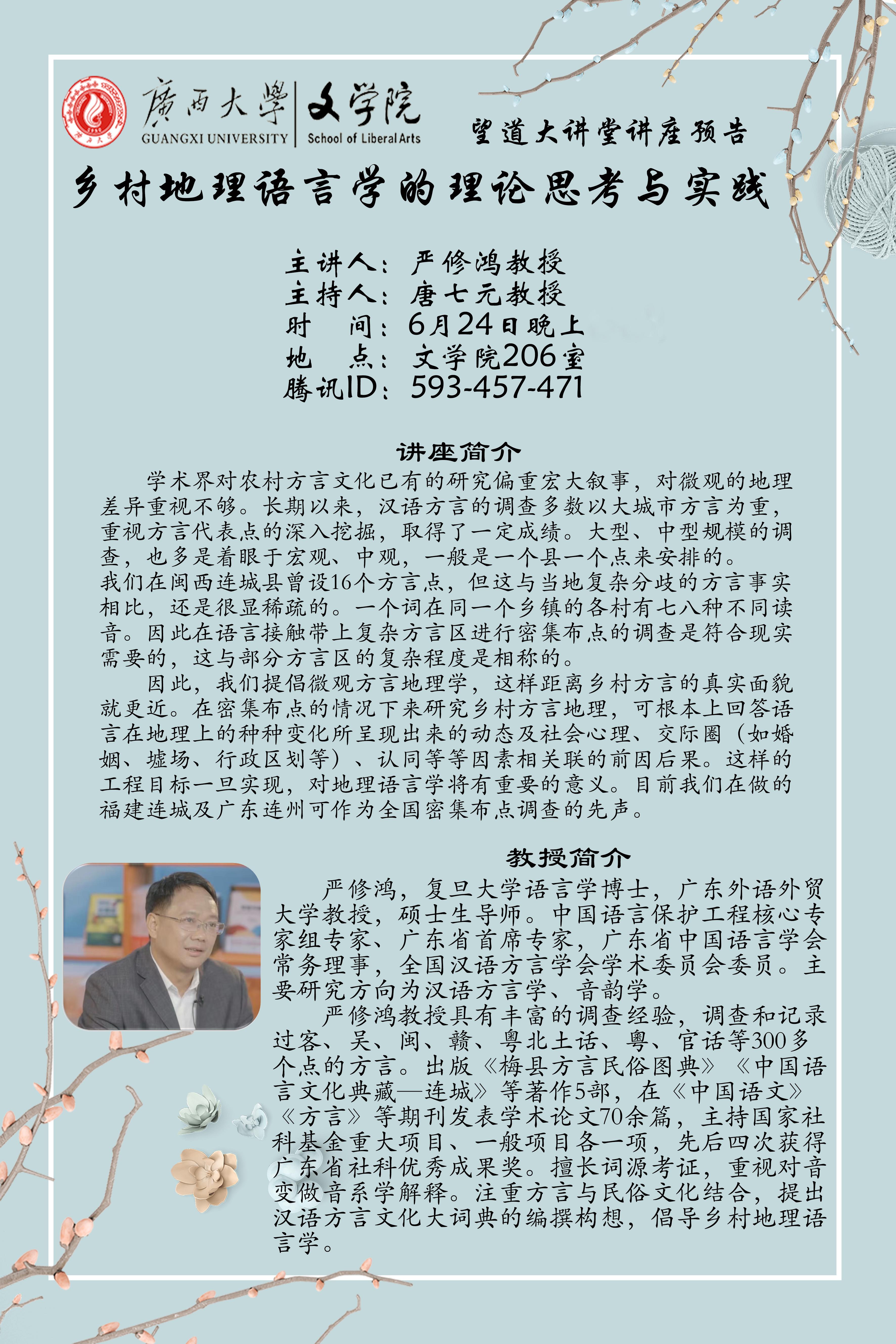 严修鸿教授: 乡村地理语言学的理论思考与实践