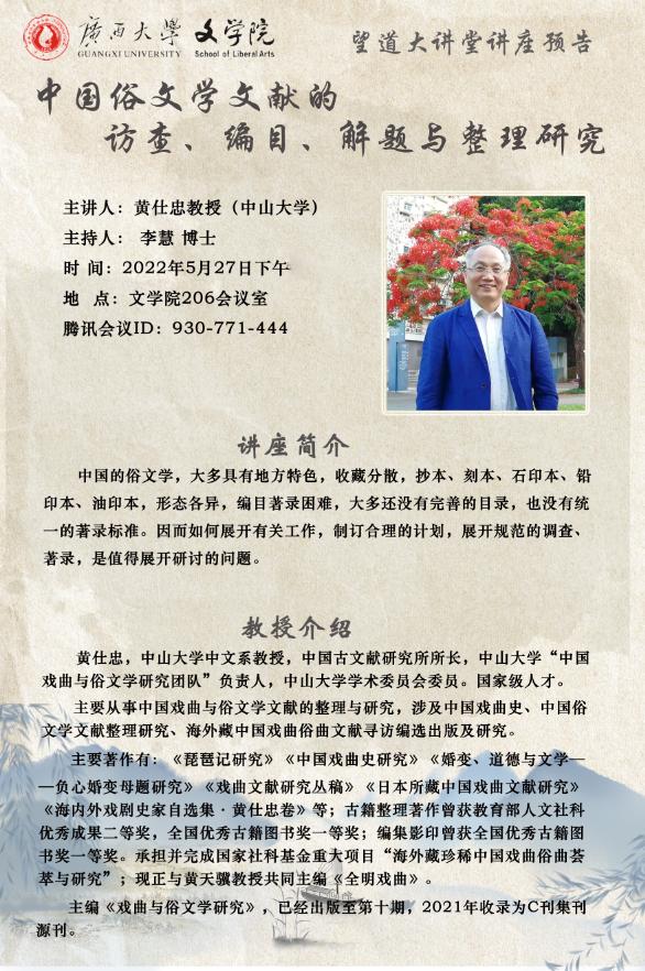 黄仕忠教授:中国俗文学文献的访查、编目、解题与整理研究
