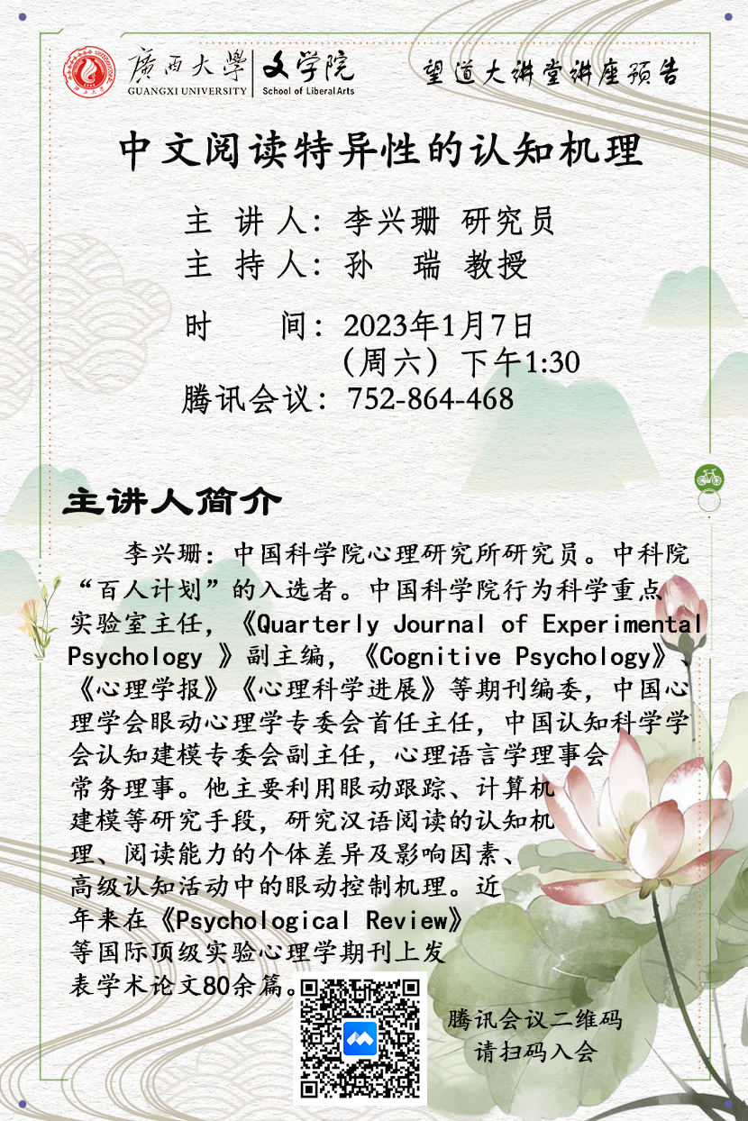 李兴珊研究员:中文阅读特异性的认知机理