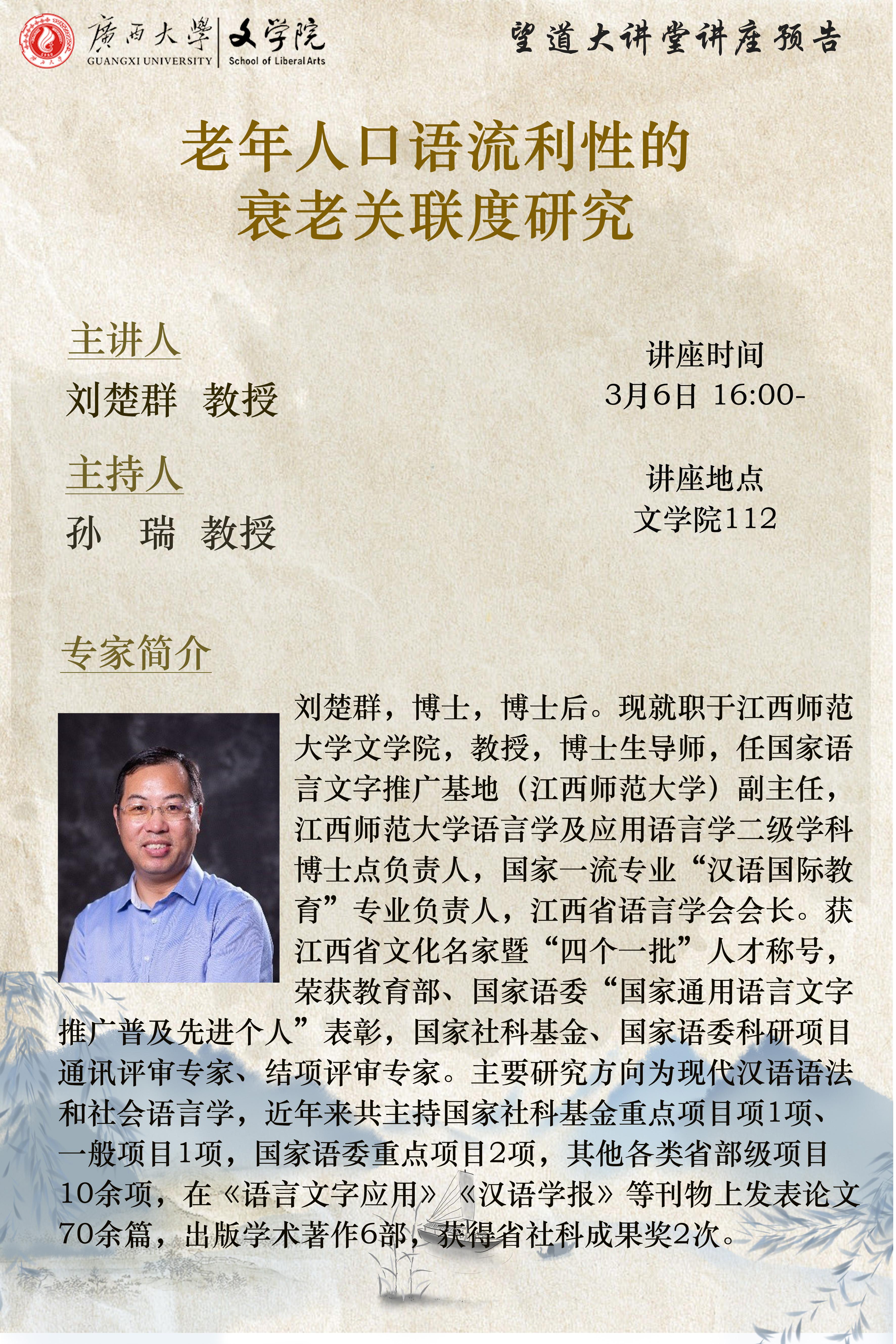 刘楚群教授:老年人口语流利性的衰老关联度研究