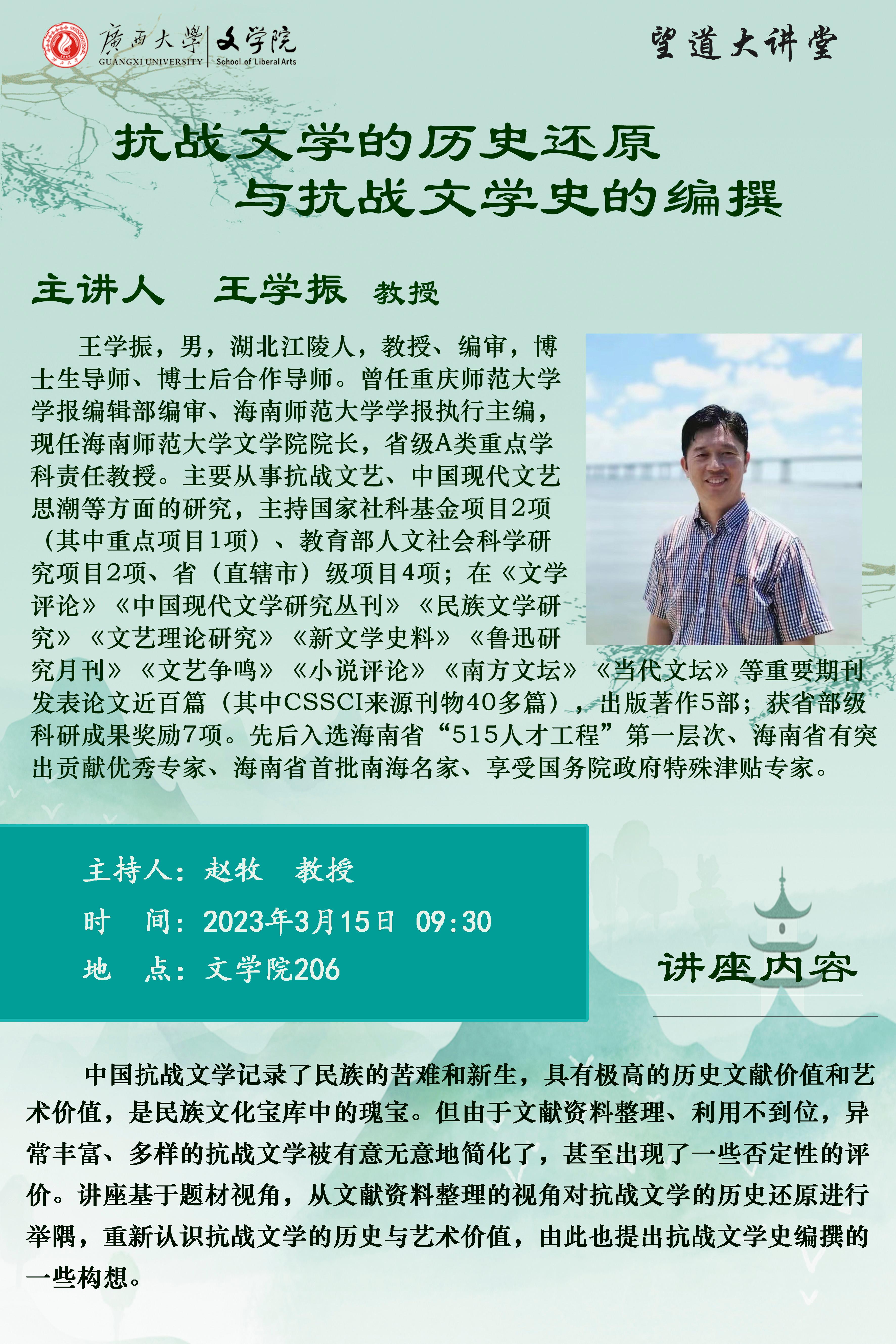 王学振教授:抗战文学的历史还原与抗战文学史的编撰