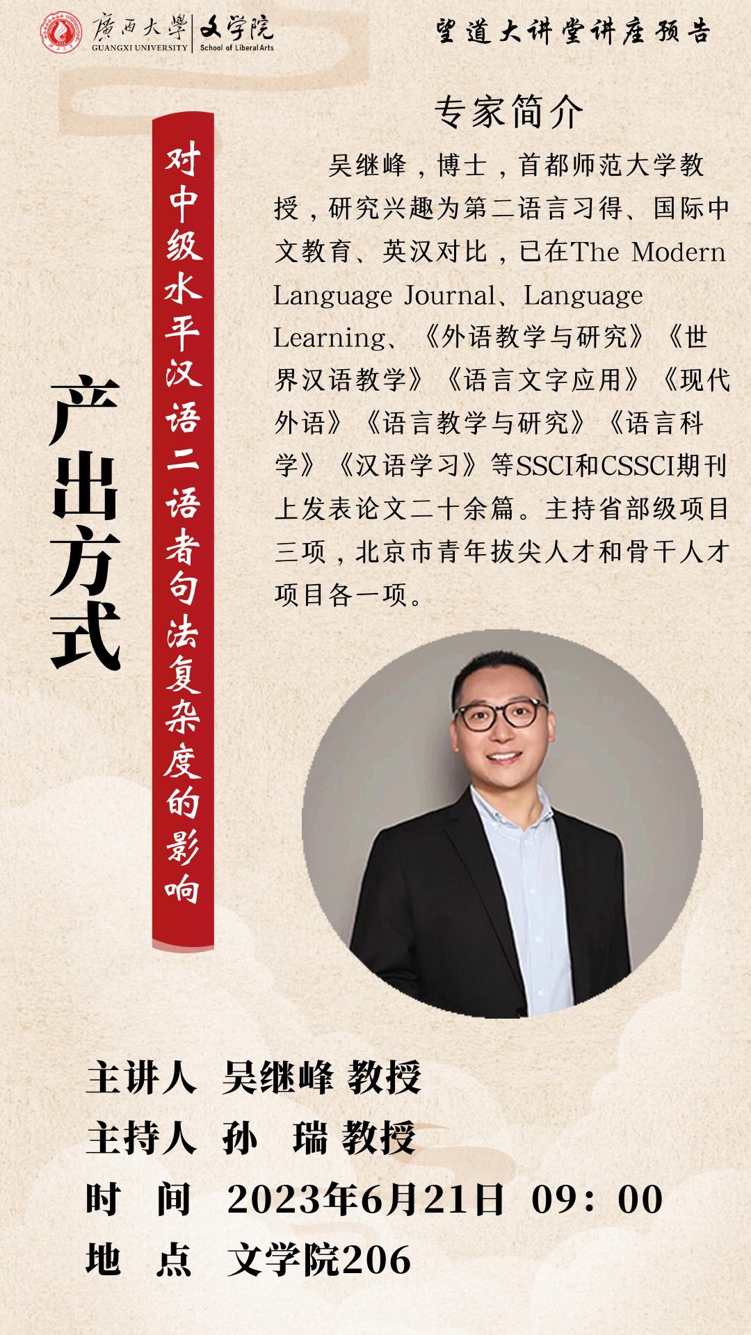 吴继峰教授:产出方式对中级水平汉语二语者句法复杂度的影响