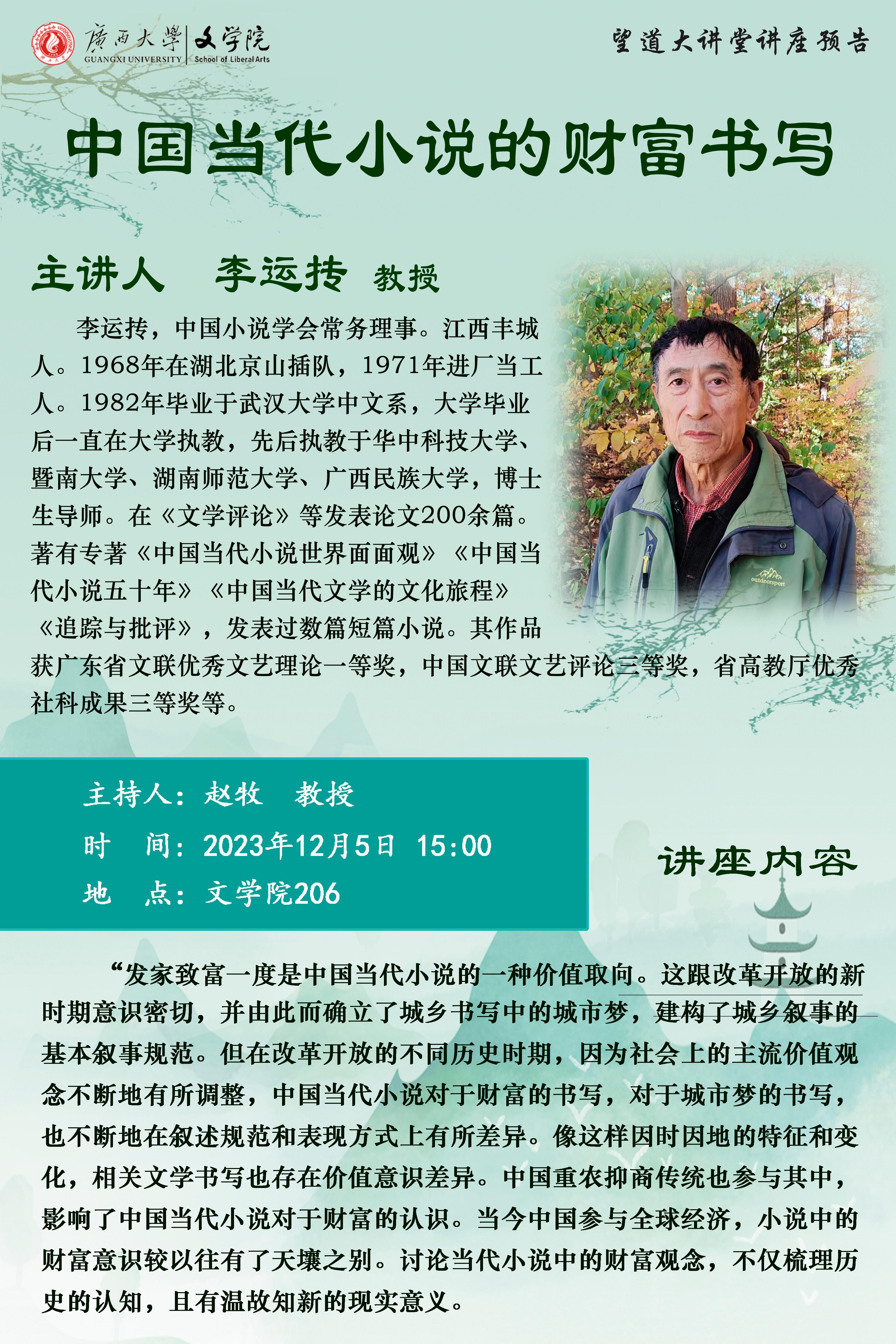 李运抟教授:中国当代小说的财富书写